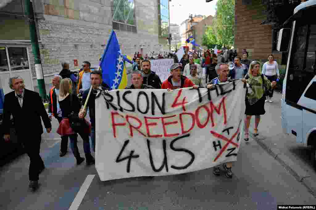 Nekoliko stotina članova plenuma građana, obespravljenih radnika i nezaposlenih iz 20 gradova BiH se okupilo u Sarajevu, sa glavnim zahtjevom - smjena vlasti u Federaciji BiH. Neki su pješke stigli iz drugih gradova sa "vjerom u pravdu". RSE foto / Midhat Poturović
