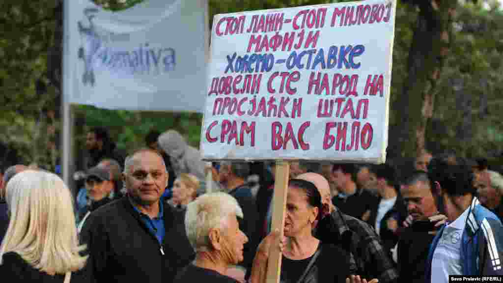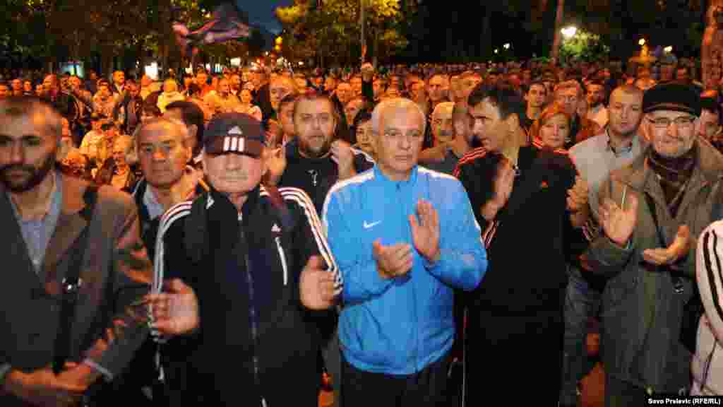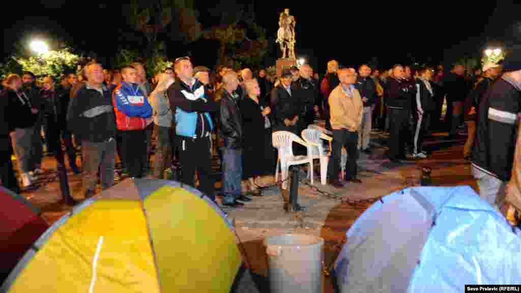 Protest ispred sjedišta Skupštine Crne Gore u Podgorici nastavljen je i drugi dan i veče. Politički ciljevi protesta Demokratskog fronta su ostavka Vlade premijera Mila Đukanovića i formiranje prelazne Vlade koja bi organizovala fer i poštene parlamentarne izbore. 28.9.2015. RSE Foto: Savo Prelević