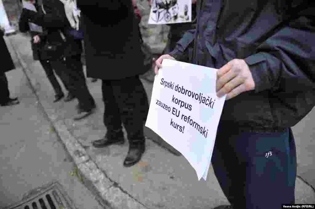 Povodom početka sudskog procesa rehabilitacije Nedića, predsednika Vlade u okupiranoj Srbiji u vreme Drugog svetskog rata, jedna mala protestna kolona vojvođanskih antifašista išla je peške 30 kilometara od Pančeva, do zgrade suda u Beogradu. Oni poručuju da se ne sme rehabilitovati čovek koji je, između ostalog, odgovoran za holokaust u Beogradu. RSE/Foto: Vesna Anđić