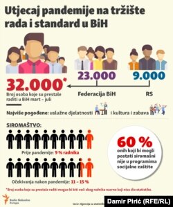 Od 245.000 ugroženih poslova, nešto manje od polovice (114.000) radi u mikro poduzećima s do deset radnika. Žene, koje čine 67 posto poslova u zdravstvu i zdravstvenoj zaštiti u BiH, u prvom su redu krize.