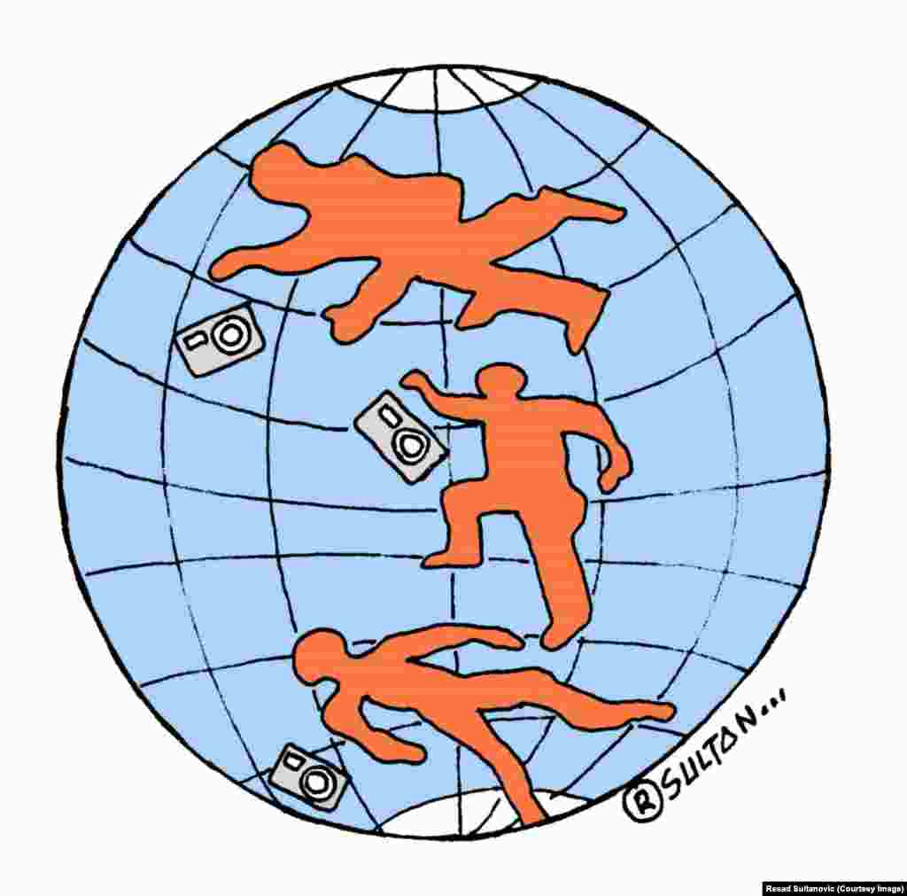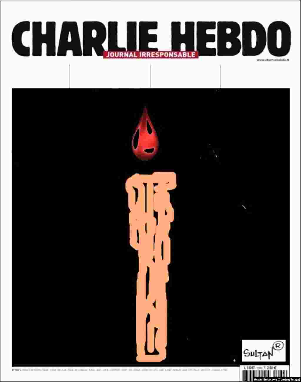 Karikaturista Rešad Sultanović ustupio je RSE svoje ilustracije rađene u znak solidarnosti sa ubijenim kolegama pariškog satiričnog časopisa "Charlie Hebdo", a koje su objavljene u mnogim svjetskim medijima i portalima.