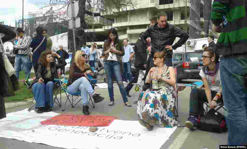 Građani nezadovoljni zbog neriješavanja izdavanja jedinstvenih matičnih brojeva za novorođene bebe, nastavili su sa protestima u Sarajevu, zbog toga što Vijeće ministara nije donijelo konačan Prijedlog zakona o JMBG, već privremenu odluku na osnovu koje će se jedinstveni matični broj izdavati na 180 dana. Foto: RSE, 6. juni 2013.