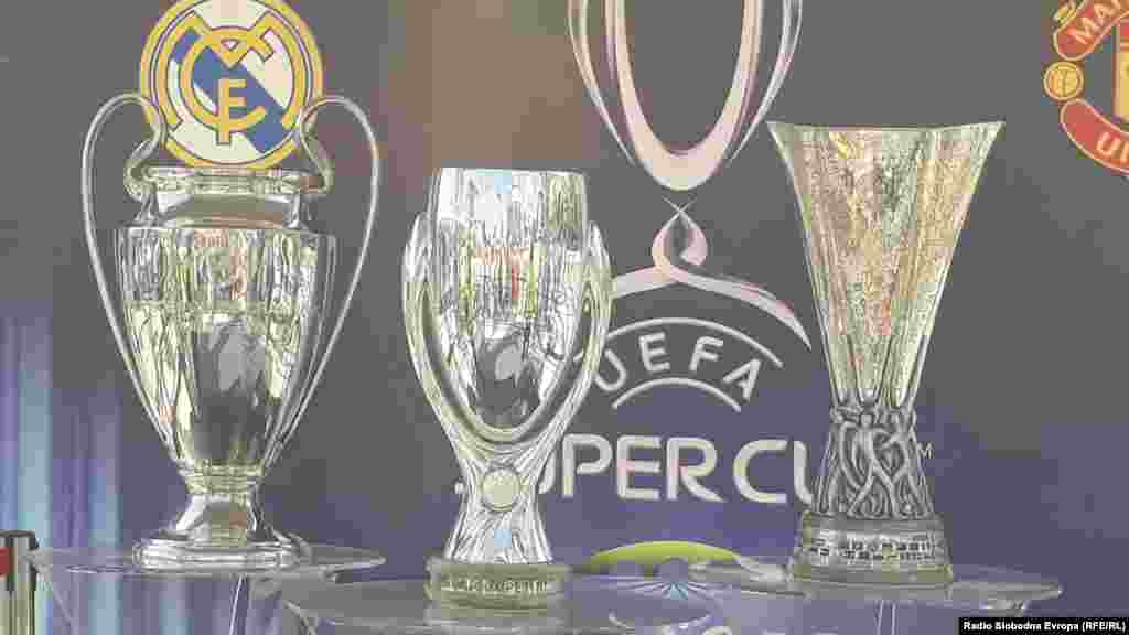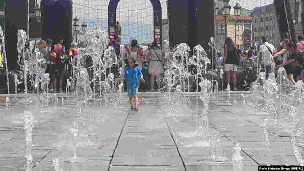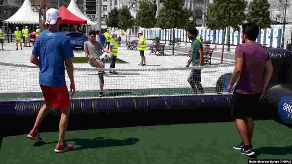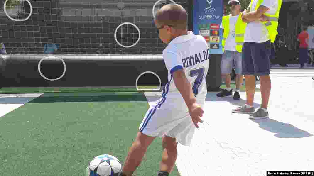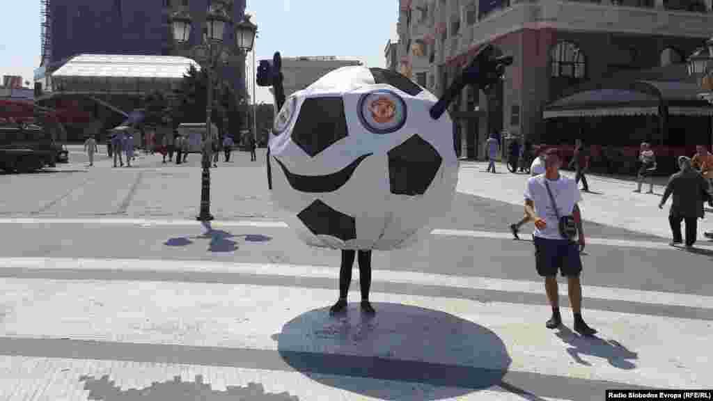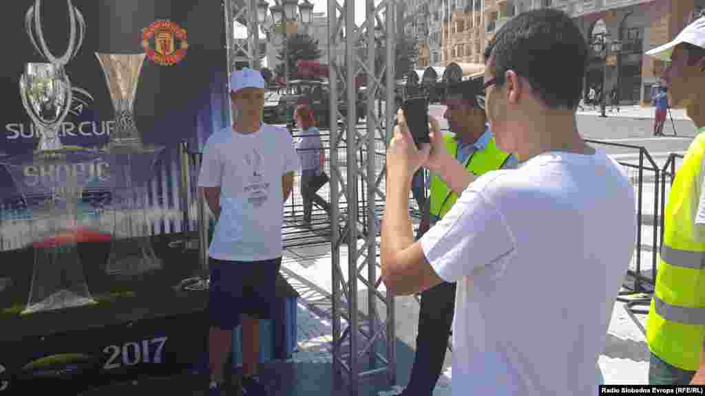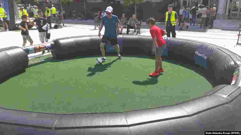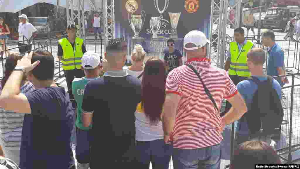 Građani se zabavljaju u neutralnoj fan zoni na trgu Makedonija u Skoplju pred susret Super kupa između Manchester Uniteda i Real Madrida, koji će se igrati u utorak, 8. avgusta u nacionalnoj areni "Filip Drugi".