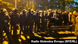 Oko Centra za kulturu su bile raspoređene jake snage policije, kojima su okupljeni zviždali i uzvikivali "ruke su vam krvave".