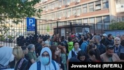 Svi prilazi sudu su blokirani a u jednom trenutku na sporednom ulazu došlo je do naguravanja okupljenih i policije koja je koristila biber sprej.