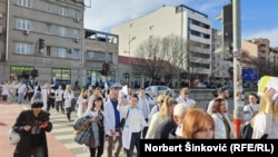 Protestna šetnja u belim mantilima završila se ispred kancelarije Komore u Novom Sadu gde su lekari predali svoje zahteve toj profesionalnoj organizaciji.