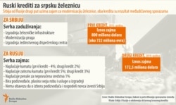 Srbija već isplaćuje jedan kredit Rusiji, podignut u istu svrhu – za železnicu. I on je poput novog, rezultat međudržavnog Sporazuma dve Vlade. Potpisan je 11. januara 2013. na iznos od 800 miliona dolara (oko 722 miliona evra) za posao koji je u ukupnoj vrednosti dogovoren na 941 milion dolara (oko 850 miliona evra).