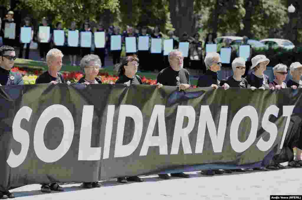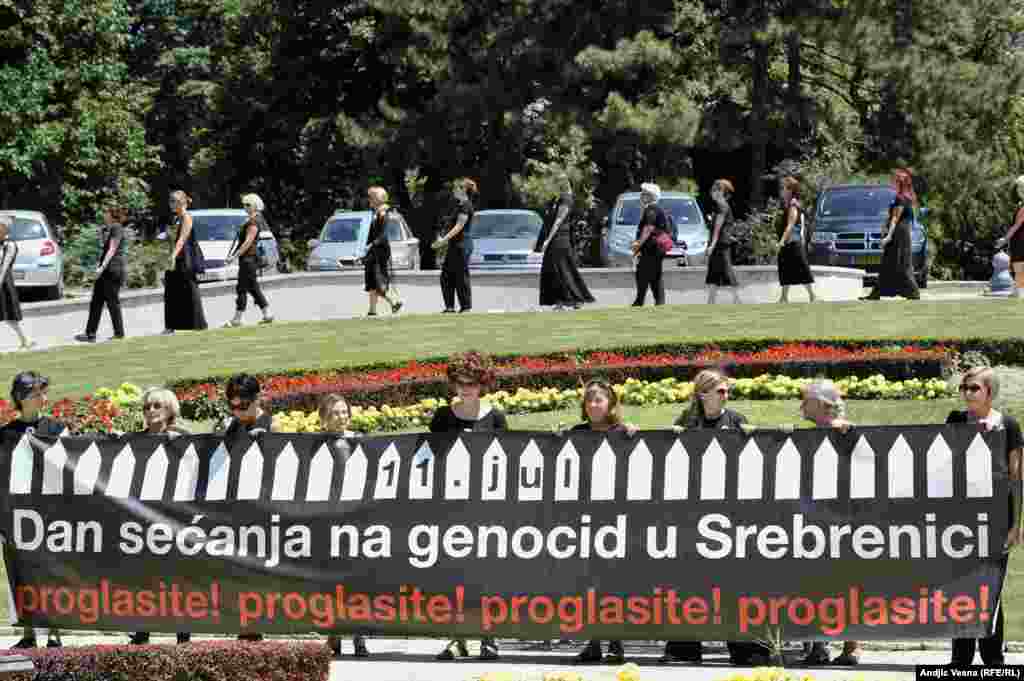 Na dan kada su za 20. godišnjicu genocida u Srebrenici zabranjena sva okupljanja u Beogradu, "Žene u crnom" su ispred Predsedništva Srbije organizovale performans "Kada Srbija pogleda u ogledalo videće Srebrenicu: 20 godina - 20 ogledala".