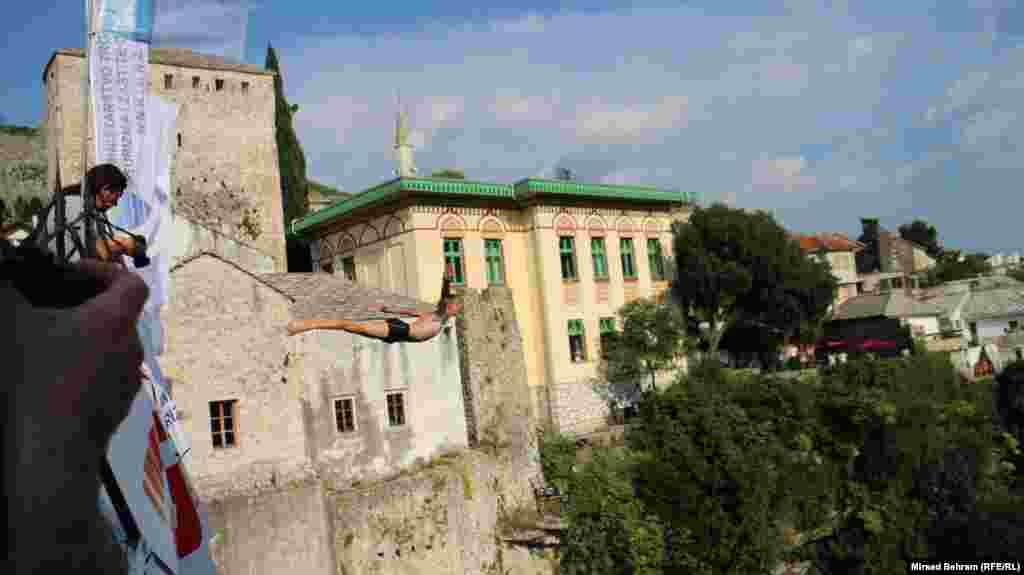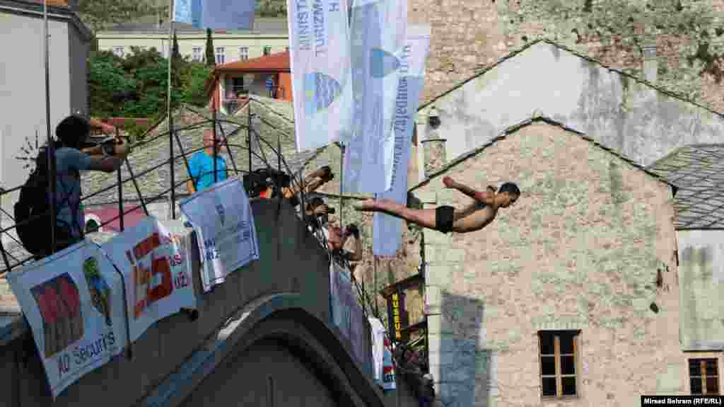 Mostarski skakači Lorens Listo i Igor Kazić pobjednici su ovogodišnjih, 452. po redu visinskih skokova sa Starog mosta u Neretvu.