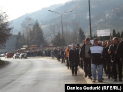 Nakon okupljanja u starom delu grada oko 450 radnika okupilo se i na Trgu FAP-a u novom delu grada gde su još jednom ponovili svoje zahteve.
