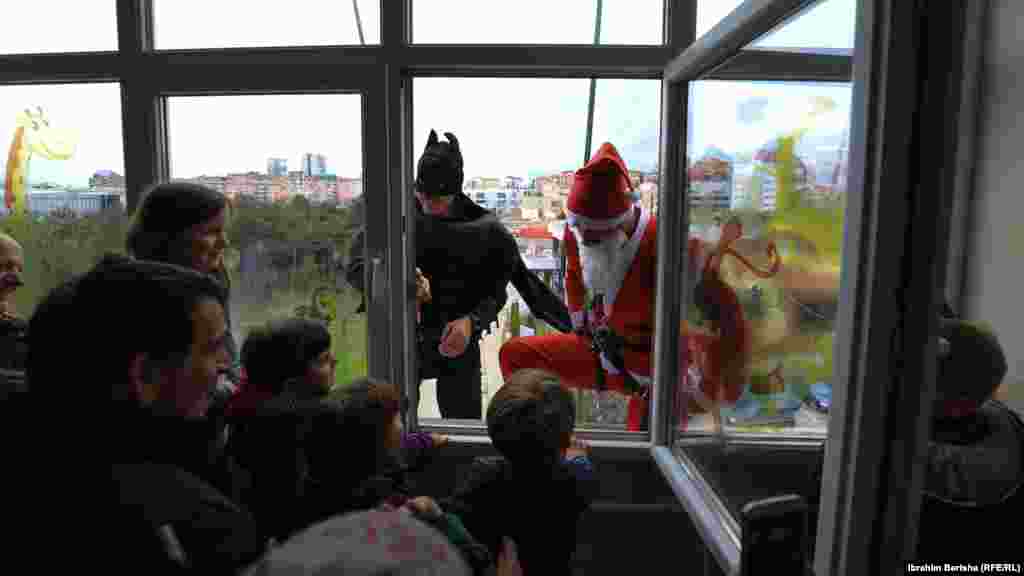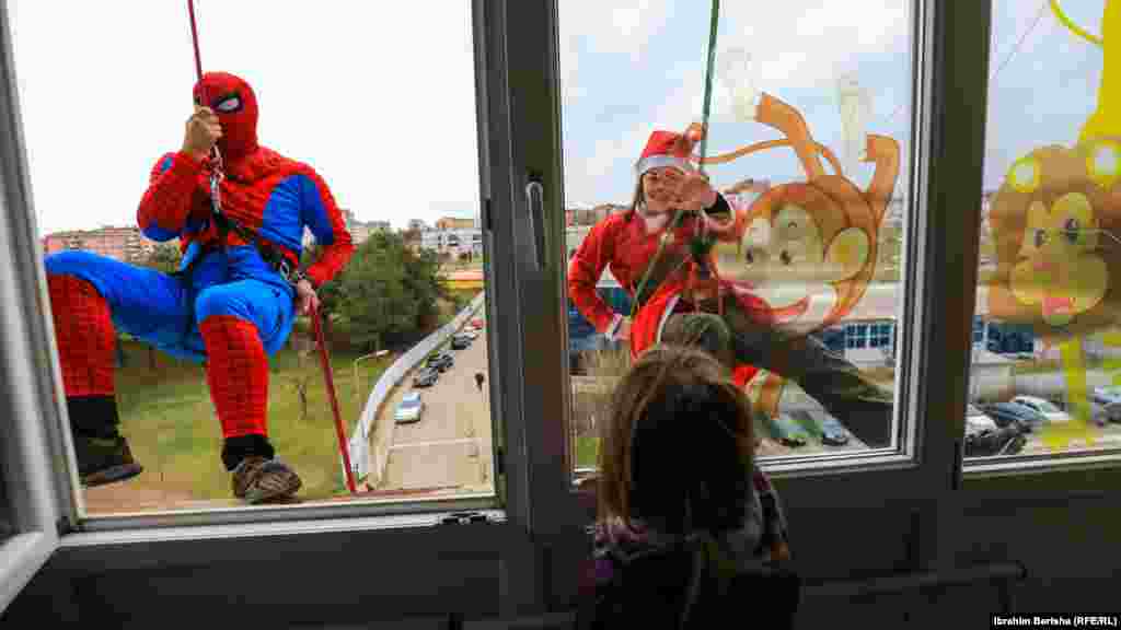 Likovi iz animiranih filmova poput Supermena, Betmena i Spajdermena spustili su se konopcima niz fasadu pedijatrije Univerzitetskog kliničkog centra Kosova, donoseći radost deci koja se leče na klinici.