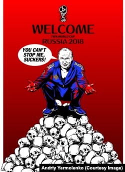 Svjetsko prvenstvo u fudbalu u Rusiji počelo je 14. juna. Jedan ukrajinski umjetnik je i prije početka prvenstva svojim radovima prokomentarisao ruske domaćine, piše Radio Slobodna Evropa.