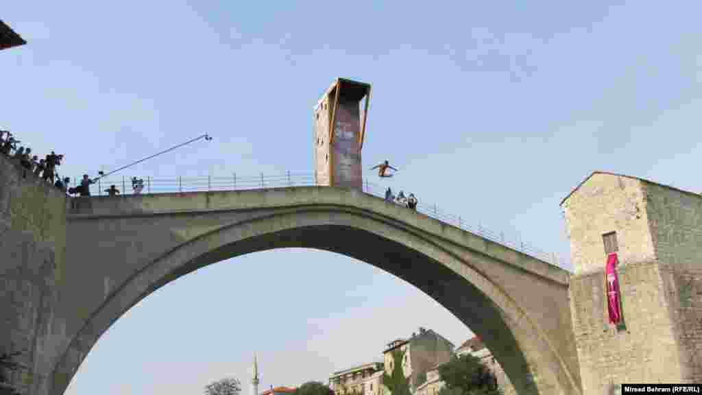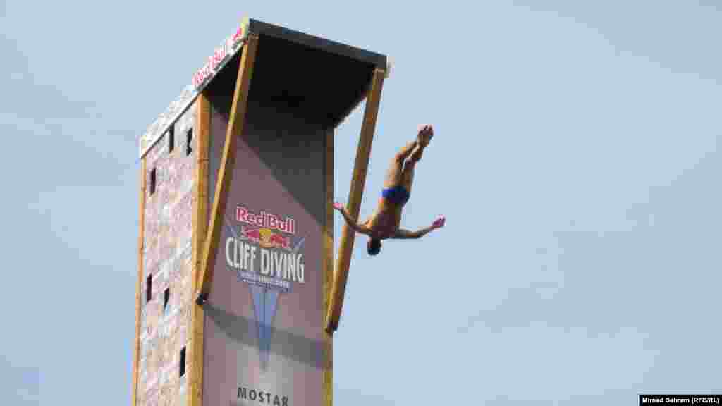 Meksikanac Jonathan Paredes pobjednik je takmičenja u ekstremnim visinskim skokovima, Red Bull Cliff Diving svjetskog kupa, koji su u subotu poslijepodne održani na Starom mostu u Mostaru. Paredes je slavio u konkurenciji 14 skakača iz cijelog svijeta, ispred zemljaka Sergia Guzmana, a na pobjednički podijum još se kao trećeplasirani popeo David Colturi iz Sjedinjenih Američkih Država. Skakalo se sa visine od 28 metara, sa posebne platforme napravljene na Starom mostu.