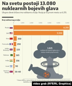 Pod "sva sredstva koja su nam na raspolaganju", Putin je, naravno, mislio na ruski nuklearni arsenal – koji je, zajedno sa arsenalom Sjedinjenih Američkih Država, jedan od dva najveća u svetu 30 godina nakon završetka Hladnog rata, piše redakcija Radija Slobodna Evropa na engleskom jeziku.