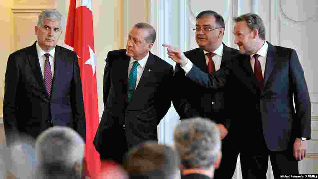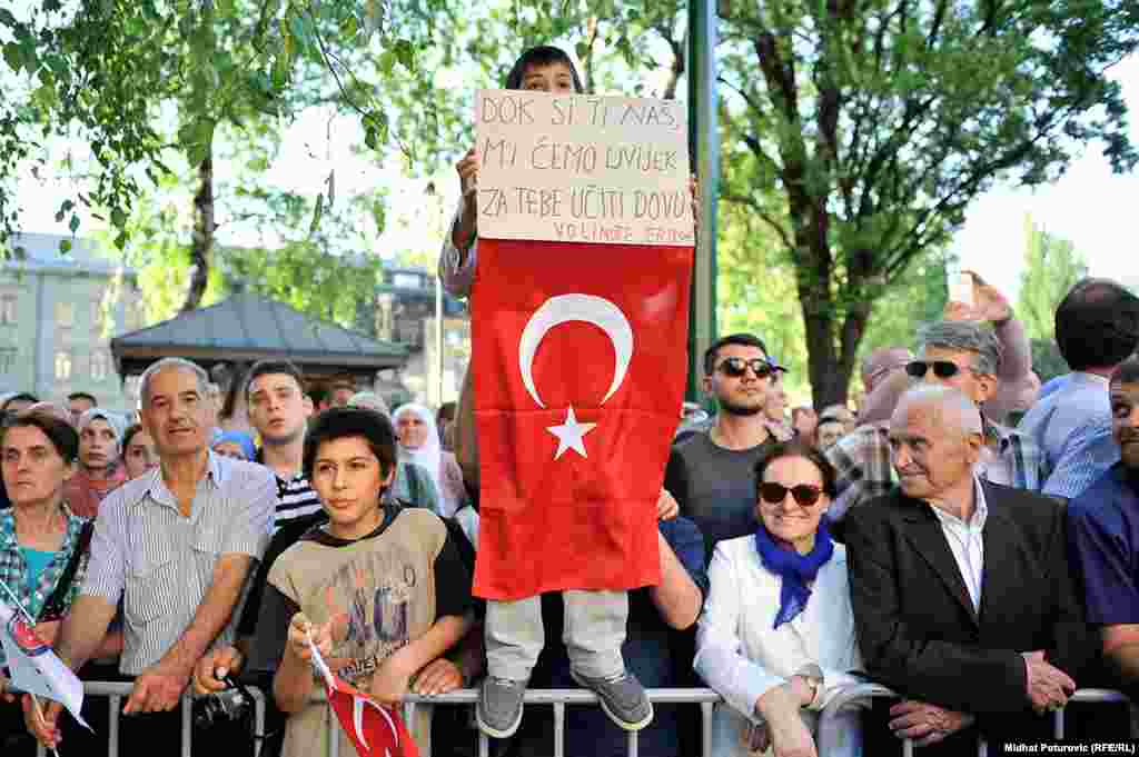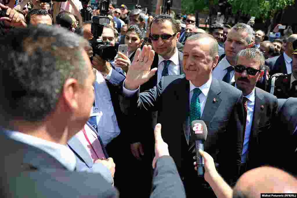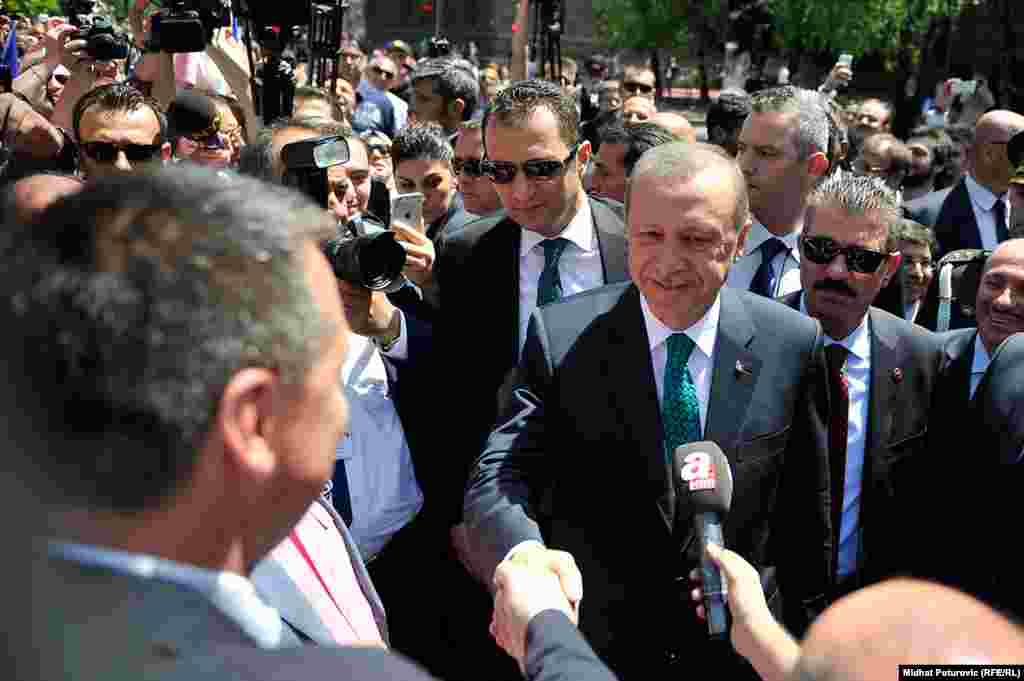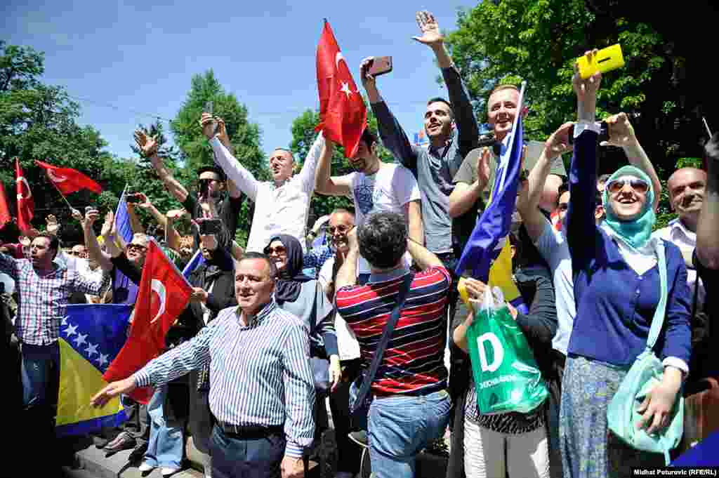 Predsjednik Turske Recep Tayip Erdogan stigao je u posjetu BiH, gdje su ga dočekali članovi Predsjedništva BiH - Mladen Ivanić, Bakir Izetbegović i Dragan Čović. Brojni građani takođe su na ulicama pozdravili turskog predsjednika. 20.5.2015.