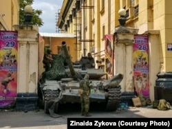 Nekoliko blokova severno niz Budjenovski prospekt, između ulica Puškina i Gorkog, nalazi se veliki štab JuVO-a, koji ima centralnu ulogu u ruskoj invaziji na Ukrajinu. Tamo je bilo znatno više boraca, s dva tenka frontalno okrenuta jedan prema drugom, dok je treći bio u kapiji obližnje zgrade cirkusa smešten između dva trošna ciglana stuba na kojima su posteri s cirkuskim životinjama. Vojnici i oklopna vozila bili su i u dvorištu kompleksa štaba JuVO.