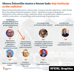Kako se navodi, između ostalih, treba da budu saslušani odgovorni iz Ministarstva za građevinarstvo, saobraćaj i infrastrukturu, nadležni ministar Goran Vesić, odgovorni iz Železnica Srbije i Zavoda za zaštitu spomenika kulture Grada Novog Sada, kao i druga lica, u cilju "utvrđivanja svih bitnih elemenata krivičnih dela i krivične odgovornosti" za nesreću.
