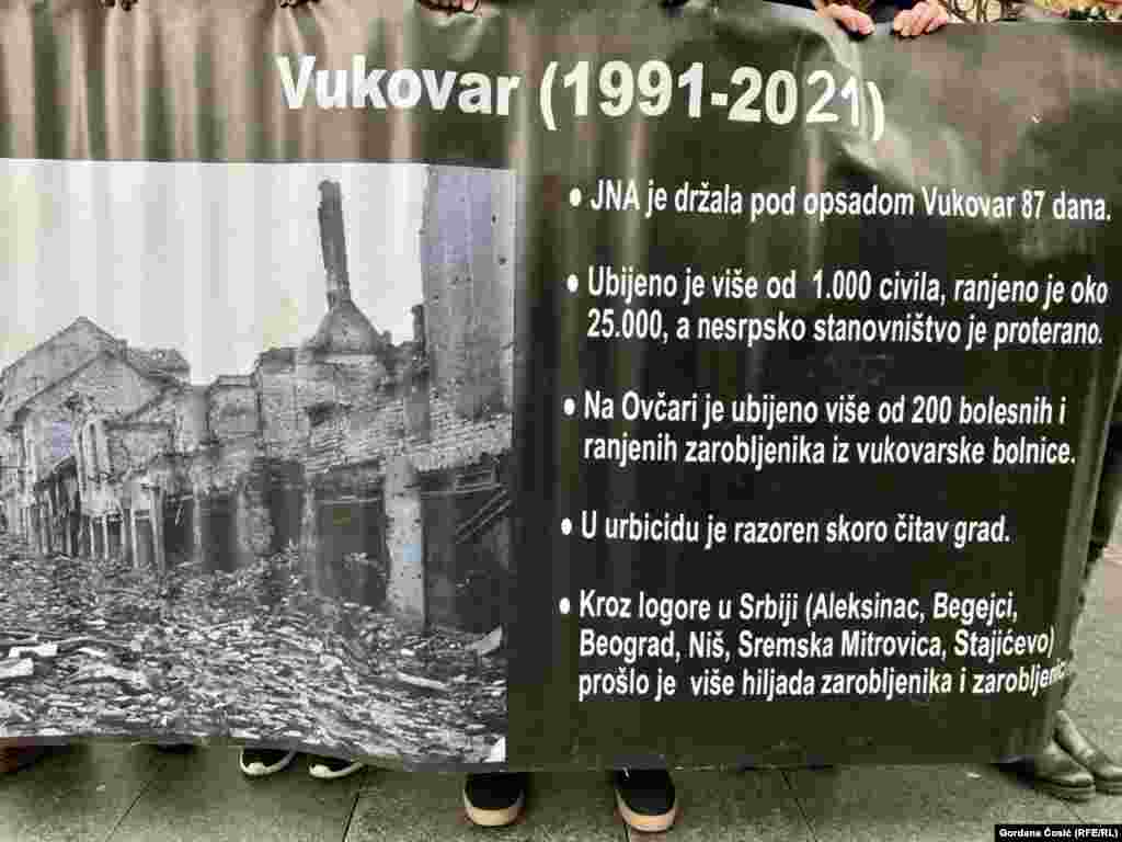 "Tokom opsade Vukovara počinjen je ratni zločin urbicida i kulturocida – uništeno je istorijsko jezgro grada, a Vukovar je postao simbol varvarskog uništavanja gradova u ratu", saopštila je organizacija "Žene u crnom" 18. novembra.